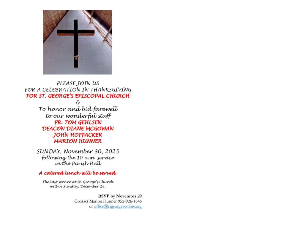 CELEBRATION IN THANKSGIVING FOR ST. gEORGE'S CHURCH-NOVEMBER 30